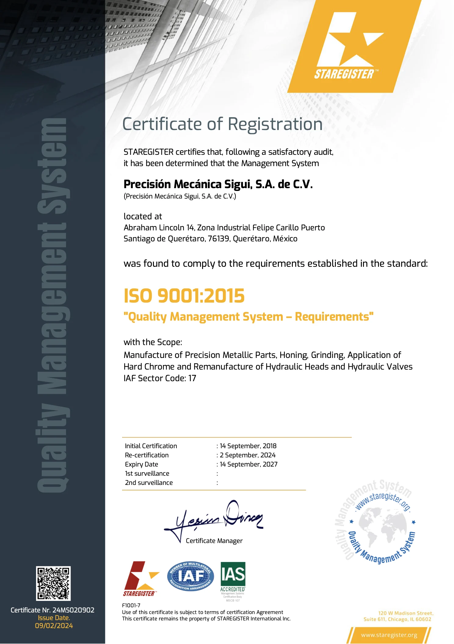 La certificación ISO 9001:2015, los certificados de material y la documentación PPAP son algo natural para nosotros.